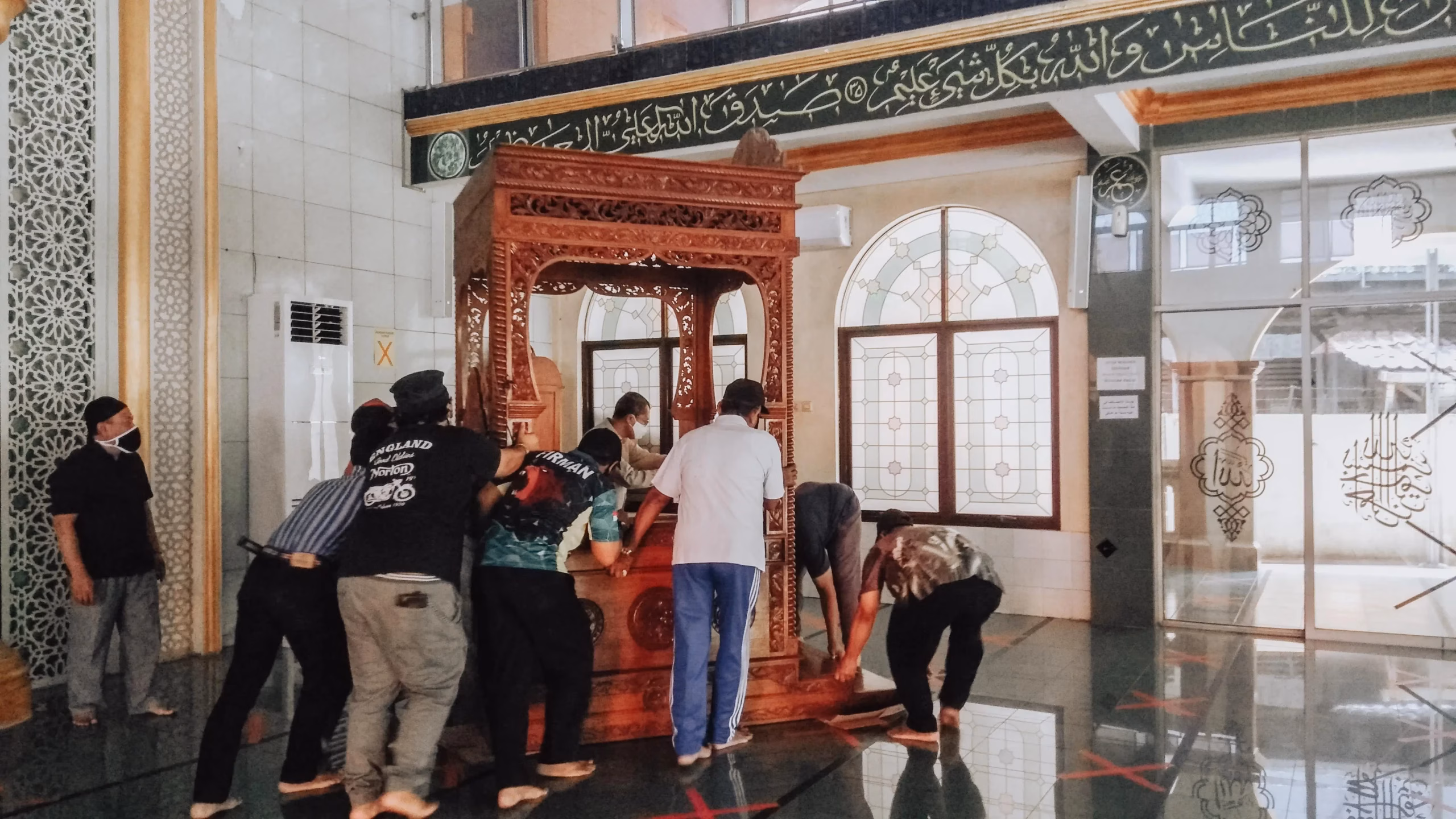 Sekretaris panitia pembangunan renovasi kubah masjid H. Andi Kusuma mengatakan, “Puji syukur ke hadirat Allah SWT karena hari ini tanggal 2 Agustus 2020 proses renovasi kubah masjid Al-Muhajirin resmi dimulai”.